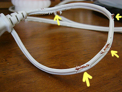 うちも安い扇風機だったからよかったけど、これが高価な電化製品のコードだったら…と思うとゾッとするなぁ^^;