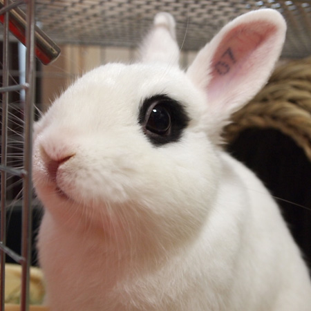 イヤーナンバーは血統書つきのウサギとしてラビットショーへ出る際に必要なものだそうで、ドリィをお迎えしたお店では店頭の子ウサギ全員につけられていました。