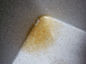 水洗いしてもこすっても落ちないガンコなうさぎの尿石。