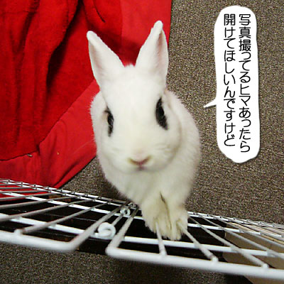 ウサギが何かを要求しているのに、その様子がかわいくて