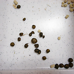 真ん中にあるのがいつものサイズなのですが・・・その周りに落ちてる●のいびつで小さいこと!