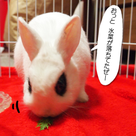 次に水菜をくわえて持ち出したのですが、途中で落とした水菜も忘れずにパクリ。