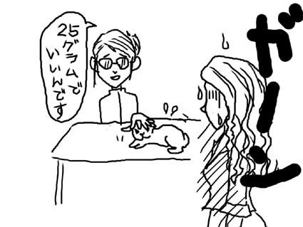 医師「この子くらいの体重だったらペレットは1日25gでいいんですよ。」