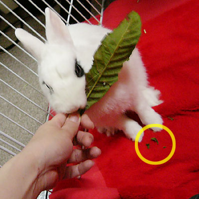 びわの葉、ウチのCANDYも最初齧ってはこぼすの繰り返しでしたが