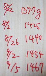 ブラッシングのときや気がついたときにドリィの体重を測っているのですが。