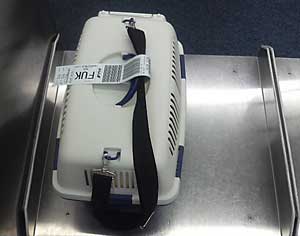 輸送に適さないキャリー(布製等)で持ってきた場合は、専用ハードキャリーをレンタルすることになり、持ってきたキャリーをそのまま専用ハードキャリーの中へ入れてもらいます。