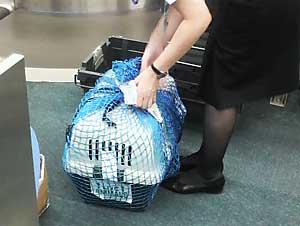 ハードキャリーは扉をテープで固定され、ネットをかけてもらいます。