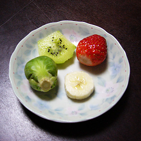 今日はいちご・キウイ・バナナ、それと芽キャベツを買ってきました。