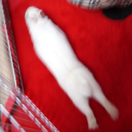 ドリィがサークルの中でピョンピョンしてる間に、ペレットを足し、牧草を入れ替えて、トイレ掃除をします。