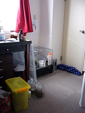 あとは飼い主が寝るまでの間に、ケージ越しになでなでしたり、時々おやつをあげたりしてます。