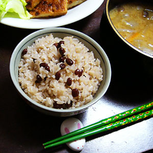 白米のみ・おしょう油等で少々味付けした「お赤飯風の味ごはん」なのですが。