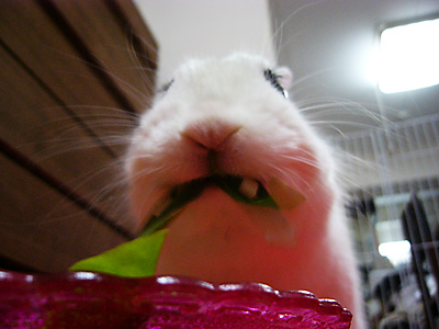 ドリィは葉物も大好きらしく、まんざらでもない様子です。