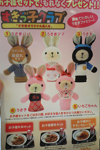 お子様セットを注文するとウサギさんの指人形がひとつもらえるそうです!