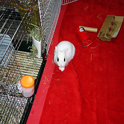 ドリィの換毛によりミヤチョ夫のウサ毛アレルギーがひどくなってしまったので、とりあえずドリィはケージに戻ってもらっています。