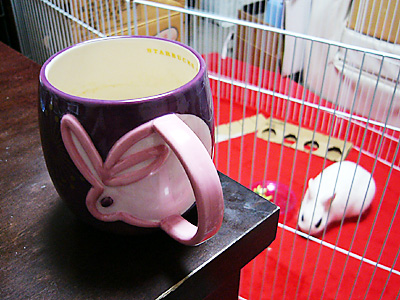 今日はお気に入りのマグカップでカフェオレを飲みながら、ドリィのサークル活動を見守りました。