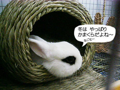 かまくらの中でくつろいでいるドリィ。