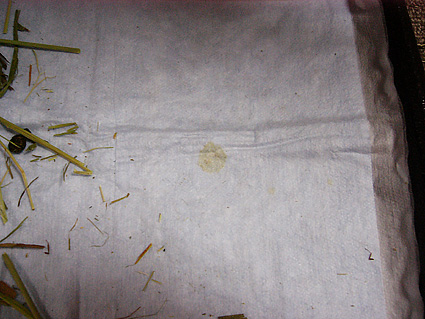 ハードキャリーの中に牧草を敷き詰め、保冷材にタオルを巻いて入れました。