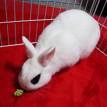 水分補給のためのブロッコリーを入れたら、さっそくムシャムシャと食べ始めました。